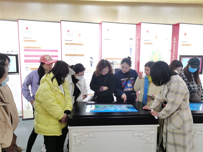 隨后,“娘子軍”們前往宣城宛陵湖法治文化館參觀。大家認(rèn)真聆聽講解員的講解,依次參觀了“尊法學(xué)法”“守法用法”“普法路上”三個展區(qū),現(xiàn)場學(xué)習(xí)了法治文化,觀看了宣城市普法宣傳片和法治故事短片,體驗了法治模擬場景。通過參觀學(xué)習(xí),進(jìn)一步增強了她們尊法學(xué)法守法用法意識,將法治觀念融入今后工作和生活中,做到廉潔從業(yè),依法履職。