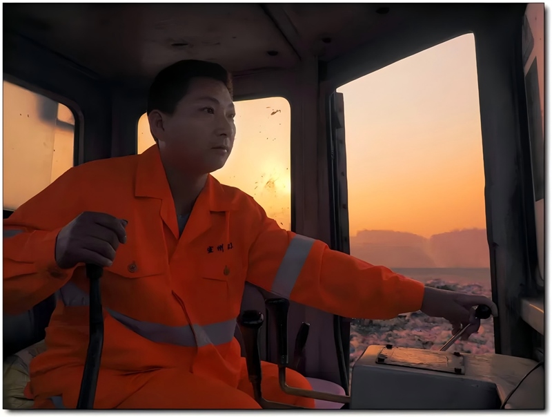 徐開鋒臨危受命,在填埋場當推土機駕駛員。每天的工作就是把400多噸的垃圾推平壓實。每到夏、秋季節(jié),臭氣熏天的垃圾引來更多的蒼蠅“光顧”,用徐開鋒同事的話說,“遠看徐開鋒就好像穿了一副‘將軍鎧甲',蒼蠅扒在他的臉上、手上、背上……”彼時的徐開鋒已經(jīng)是一名7歲女孩的父親,但為了應對繁重的工作,他每天5點鐘就騎著摩托車出了門,等到晚上回家時,女兒多半已經(jīng)睡著了!邦I導把我安排到這個崗位,我就要崗位上做出個樣!”,正是胸懷這份“執(zhí)拗”,他在填埋場推土機駕駛員崗位上堅持了11年。